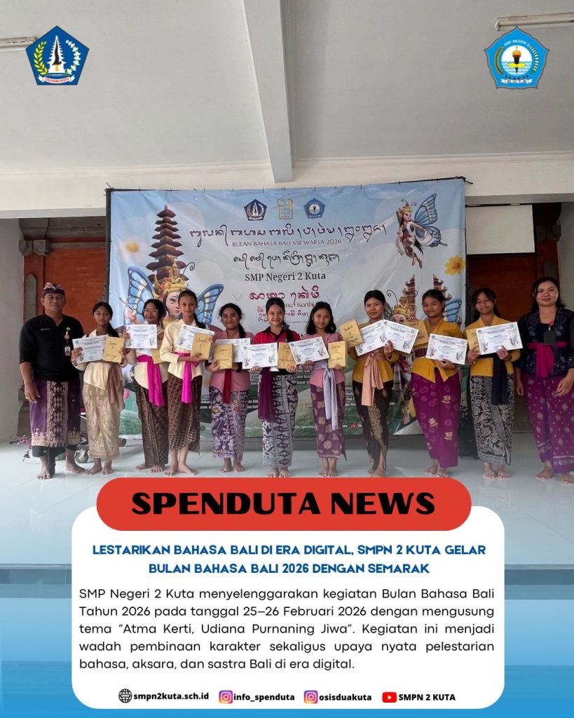 SMP Negeri 2 Kuta menyelenggarakan kegiatan Bulan Bahasa Bali Tahun 2026 pada tanggal 25–26 Februari 2026 dengan mengusung tema “Atma Read more