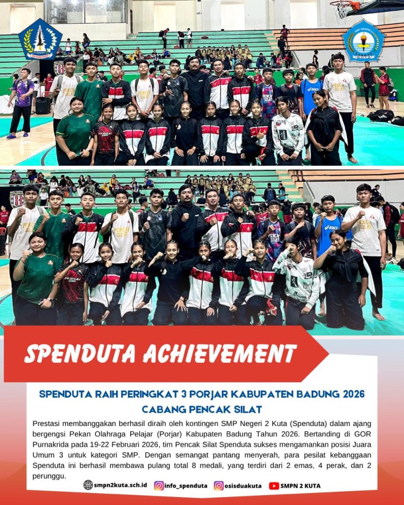 Prestasi membanggakan berhasil diraih oleh kontingen SMP Negeri 2 Kuta (Spenduta) dalam ajang bergengsi Pekan Olahraga Pelajar (Porjar) Kabupaten Badung Read more