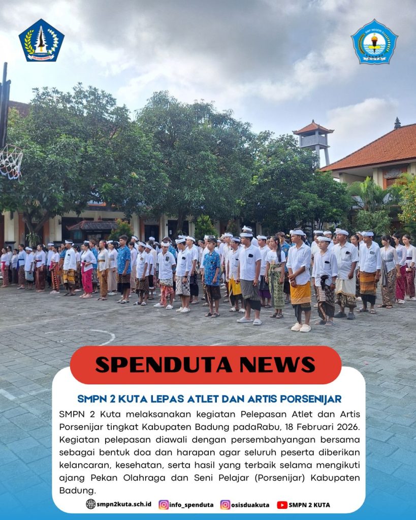 SMPN 2 Kuta melaksanakan kegiatan Pelepasan Atlet dan Artis Porsenijar tingkat Kabupaten Badung pada Rabu, 18 Februari 2026. Kegiatan pelepasan Read more